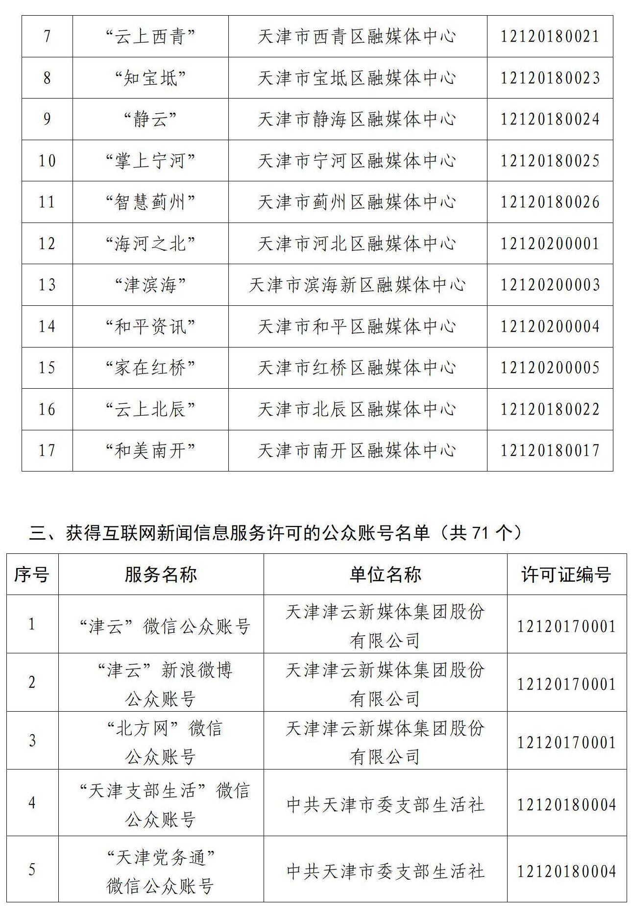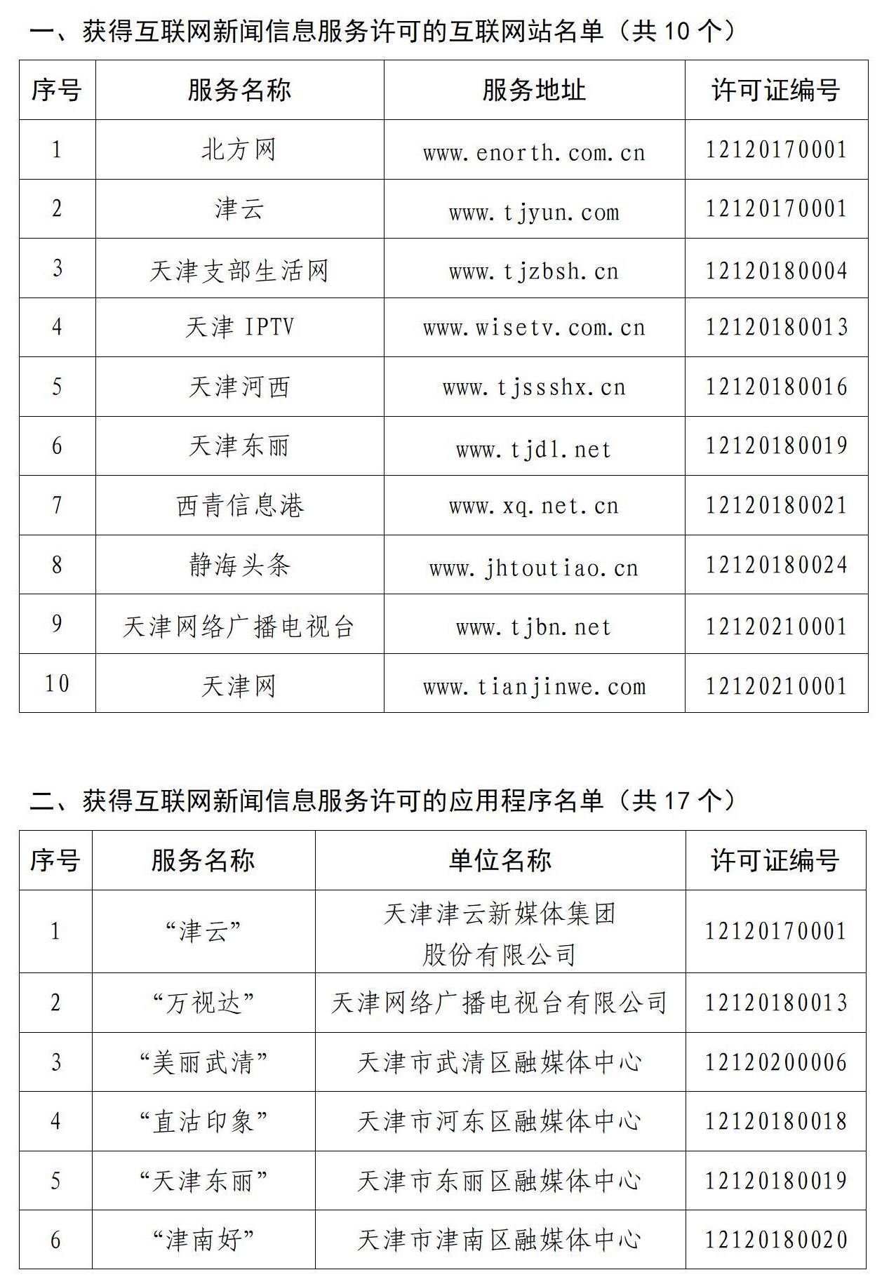 自《互聯網新聞信息服務管理規定》頒布實施以來,天津市互聯網信息辦公室負責組織開展本市互聯網新聞信息服務許可工作。現將天津市互聯網新聞信息服務單位相關許可信息依法予以公開,包括:互聯網站10個,應用程序17個,公眾賬號71個,共計98個服務項。